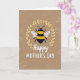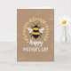 Designed with a cozy, gentle look, this card centers on a round, cheerful striped insect with black and sunny yellow bands and soft white wings that seem to hover in place. A glowing ring of golden leaves circles it like a quiet embrace, adding a romantic, cared-for feeling in the way the wreath wraps around the little figure ❤️. Near the upper-right curve of the wreath sits a small golden detail, shaped like a tiny budding flower or honeycomb piece, adding texture and charm. The background is a rich taupe with faint lighter patterns drifting across it, giving the scene a calm, intimate setting. The words “Happy Mother’s Day” appear below the main illustration in white, flowing lettering, centered and easy to read. Gold and white accents stand out against the earthy backdrop, like a soft bouquet offered with a warm smile 🌼. The wreath’s leaves are stylized and luminous, with gentle highlights that make the circle look softly lit from within.