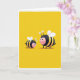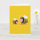 This design shows two friendly, insect-like cartoon characters standing close together on a solid yellow background, their rounded bodies striped in black and yellow. The larger figure leans slightly toward the smaller one, and the smaller one looks up with an admiring gaze that reads like gentle affection ❤️. Both have rosy cheeks, wide dark eyes, and small smiles that make the moment feel sweet and companionable. Thin, translucent white wings sit on their backs, and curved antennae rise above their heads with soft rounded tips. The lighting is even and soft, with only a faint shadow under their feet to keep them grounded. There is no visible headline or caption text, leaving the open yellow space to frame the pair like a simple spotlight 🌼. The two striped figures stand side by side at the center, with their white wings and tiny shadow clearly outlined against the bright yellow field.