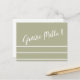 Grazie Mille! Italian Thank you postcard with pretty white typography and white stripes on a muted tone background in your choice of lovely colors.