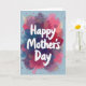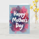 This card features a light pastel blue background with a bright burst of blended color radiating from the center, like watercolor pigments drifting outward. In the middle, the text “Happy Mother’s Day” appears large in white flowing lettering, standing out clearly against the color cloud. Around the words, rich fuchsia, deep sapphire, soft lavender, and warm crimson melt into each other, creating a gentle sense of closeness, like an affectionate hug captured in color ❤️. Faint heart shapes are tucked into the swirling pigments, appearing and fading as if they’re sharing quiet little messages of love. Small multicolored dots are sprinkled across the design like confetti, adding a light, friendly sparkle 🌼. The edges of the color burst look soft and airy while the lettering stays crisp, giving the center a calm focus. The hearts sit lightly within the color mist, and the tiny dots drift across the blue background in scattered clusters.