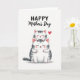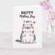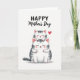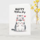 This card shows two stylized cats stacked in a sweet little tower on a white background, with the smaller one resting on the larger one’s head as if they can’t bear to be apart ❤️. Both have closed eyes and faint smiles, giving the scene a quiet, affectionate mood like close friends sharing a calm moment. Soft gray stripes and gentle shading shape their fur, while rosy pink warms the inner ears and cheeks. Tiny red details color their noses and paw pads, adding a cozy touch without overpowering the soft palette. The smaller cat’s paws curl around the bigger cat’s head in a snug hug, and their relaxed faces suggest trust and comfort. Above the pair, a short message sits near the top in black lettering, centered so it reads clearly before your eyes drop to the illustration. Off to one side, a single bright red heart floats near their heads, like a little accent mark of affection 🌼.