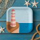 A pink and white striped lighthouse landscape. This design looks really effective on these Paper Plates