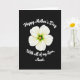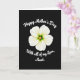 This card features a single white flower with five gently curved petals, glowing softly against a deep black background for a dramatic, intimate contrast. Near the top, the words “Happy Mother’s Day” appear in flowing white lettering, arcing above the bloom like a quiet embrace ❤️. The petals show faint lines and soft ripples, giving the blossom a tender, cared-for look rather than a stiff, formal pose. In the center, bright golden-orange stamens cluster tightly, ringed by a small green core that adds a fresh spark of color 🌼. Below the flower, a second line of white lettering curves upward and reads “With all of my Love, Aunt.”, placed like a gentle sign-off. The spacing leaves plenty of dark, open area around the flower, making the message feel private and close, as if written just for one cherished person. The white text and pale petals stand out crisply, while the warm center glows like a tiny lantern in the middle of the bloom. The flower sits centered on the card, with the top and bottom text following smooth curves above and below it.
