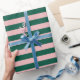 Striped Modern Christmas Holiday Green Pink Wrapping Paper