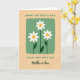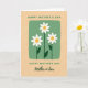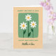 Designed with a centered trio of daisy-like flowers, the artwork shows white petals circling golden-yellow centers, like three close friends leaning in together ❤️. The flowers sit inside a softly rounded rectangle in muted sage green, placed right in the middle of the card. Slender darker-green stems rise upward, with a small leaf or two adding a gentle, caring touch to the arrangement. Behind the panel, a warm peachy-orange background has light texture that feels like a calm spring afternoon 🌼. The message “HAPPY MOTHER’S DAY” appears in dark green, with one line across the top and another across the bottom in thick, easy-to-read letters. Just beneath the main greeting, the smaller line “Mother in law” is written in a smooth, flowing style in dark green. The petals have slightly uneven, drawn-by-hand edges, and the sage panel and peach background both show subtle grain and speckled texture.
