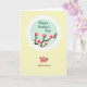 This greeting card features a soft pale yellow background with a lightly textured, paper-like look, setting a gentle, caring mood ❤️. Near the upper half sits a large circle filled with pastel teal, like a calm window that draws the eye in. Inside the circle, the words “Happy Mother’s Day” appear centered in medium green lettering, giving the message a fresh, garden feel. From the lower right edge of the circle, a slender branch reaches inward with pink blossoms and small green leaves, and the blooms lean toward the lettering as if offering it a quiet bouquet 🌼. The circle is framed by a white scalloped border, then traced again by a thin, wavy gold line that adds a soft glow. Lower on the card, a small cluster of three pink flowers rests beneath the circle, echoing the larger blossoms above. Under those flowers, “Mother-in-law” is placed in smaller, dark lettering, aligned neatly beneath the floral cluster. The pink petals show tiny star-like centers, and the gold outline gently ripples around the scalloped edge.