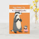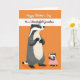 This card shows two friendly, human-like animals with striped faces and sturdy bodies facing each other in a quiet, affectionate moment ❤️. The taller figure stands on the left in charcoal, cream, and black tones, leaning slightly toward the smaller companion with a gentle, caring gaze. On the right, the smaller figure wears a simple pastel pink smock, lifting its forepaws as if meeting the other’s hands in a soft, reassuring touch. Behind them, a warm orange background fills the scene, dotted with faint speckles that add light texture without distracting from the characters. A crisp white banner stretches across the upper area, creating a clear space for the message. “Happy Mother’s Day” appears near the top in white lettering, while “to a Wonderful Grandma” sits below in brown cursive-style text, neatly centered within the banner 🌼. The overall layout keeps the characters low and central, with the white banner above them against the speckled orange field.