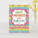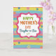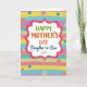 This card features a centered white frame with scalloped edges, outlined in bright pink with a dashed white border that mimics careful stitching. Inside the frame, the message “HAPPY MOTHER’S DAY Daughter-in-Law” sits neatly in the middle, with “HAPPY” in green, “MOTHER’S DAY” in orange, and “Daughter-in-Law” in teal, plus a small green flourish beneath. Behind it, soft horizontal stripes in pastel greens, pinks, yellows, blues, and purples create a cozy, fabric-like setting that feels gently affectionate ❤️. Scattered across the background are round button-like circles in coral, blue, and muted green, adding a friendly, gift-wrapped feel 🌼. Each button shape includes four small holes, and one shows a stitched cross detail that hints at care and closeness. A few of the circles have dotted outlines, giving the layout extra texture without crowding the message. The stripes also carry a faint diagonal pattern, and the buttons vary slightly in size across the page.