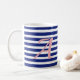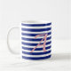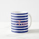 Blue and white Customizable, personalized coffee, tea, mug, cup. Click on text and letter to add name.
