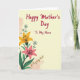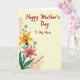 This greeting card features a tender digital illustration on a creamy, pale yellow background that feels gentle and affectionate ❤️. In the upper left area, the large title text reads “Happy Mother’s Day” in warm crimson, with “To My Niece” placed just below it and slightly to the right in the same color but smaller. The layout leaves plenty of open space around the words, giving the message room to breathe while still drawing your eye first. In the lower left corner, a botanical cluster rises upward like it’s leaning in close, adding a soft, caring mood to the scene. A golden-yellow flower sits higher in the arrangement, while a dusty rose-pink bloom rests beneath it, and their dark centers and stamens add crisp contrast. Deep green leaves spread outward around the blooms, and small teal starburst flowers sprinkle in like gentle little notes of friendship 🌼. Soft blush watercolor smudges appear in the corners, and the teal accents sit near the leaves and blossoms along the lower left side.
