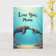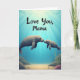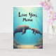 This design shows a calm underwater scene where soft light streams down through blue water onto a sandy floor below. At the center, an adult aquatic mammal and a smaller companion drift close together, their smooth faces and tiny whiskers nearly touching in a nose-to-nose nuzzle that reads like quiet affection ❤️. Their relaxed eyes and gentle body curve suggest trust and closeness, as if they’re sharing a private moment in the open sea. Around them, deep blues fade into aquamarine, with scattered rocks resting on the seabed and wisps of green sea plants swaying nearby. Small clusters of pink-toned coral-like shapes add contrast and a touch of warmth to the cool setting 🌼. Near the top of the image, a short message appears in a flowing handwritten-style font, set in a light color that stands out against the darker water. The letters sit just below the brightest rays, which spread like soft beams from the unseen surface above.
