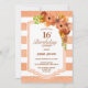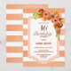 Striped Orange Floral 16th Birthday Dinner Party Invitation