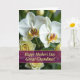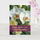 The front design shows a lush floral scene with two large white orchids at the center, their open petals angled toward each other like a gentle, affectionate glance ❤️. Each orchid has a detailed throat in golden yellow and warm orange with tiny reddish-brown speckles that draw your eye inward. Beneath them, pale yellow roses curl in soft, creamy spirals, adding a quiet, comforting layer that feels like a close family embrace. A softly blurred green background surrounds the blooms, creating a calm garden setting that keeps the flowers glowing. Across the lower portion runs a rich plum banner, giving the layout a clear place for the message without crowding the artwork. The greeting “Happy Mother’s Day Great Grandma!” appears centered on that banner in golden, slanted lettering, standing out warmly against the darker strip 🌼. The orchids’ bright centers sit just above the banner, while the roses cluster below, all framed by the diffused green wash. Share your Mother's Day sentiments with love and gratitude.