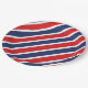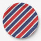 Party paper plate is shown in a patriotic red, white and blue stripes print.
