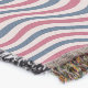 A quality printed throw has its advantages. This is a much finer weave throw than its loopier cousins, and though lighter, it is worth the investment for custom room accessorizing. The back is much prettier than the typical brown, and the fringe on the long sides very vivid, the selvage nicely done. Before photographing, I washed the throw in cold water, delicate, with a thicker woven throw the same size. On tumble dry low, this throw was dry in half the time as the other. This is a very practical quality if you use throws for furniture covers or to wrap up in frequently. The sleekness of the fabric makes it a great layer for accenting or protecting without the feeling of sitting on too much stuff. Perfect for napping or when you feel a light chill coming on. The color printing is beautiful and on this fabric, matched the design and color of my Photoshop image. This is an advantage for blending room fabrics and colors. The fringe on the short sides prints the colors from the design image and therefore varies from the side fringe. I streaked a white fractal line through the plaid pattern to give the illusion of weaving. This printed as crisp as an illusory thread, and put some white in the short side fringe, showing another advantage of print vs loomed- for artistic purposes, line lines, detail, and color integrity can be planned and preserved. My loomed throws have color limitations and more of a needlepoint texture. Print throws reproduce an exact image. The throw felt a little stiff straight out of the package, but this went away in the first delicate wash. Of course I searched the wash water for ink or bleeding and there was none.