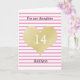 Striped Pink and Gold Heart 14th Birthday Daughter Card