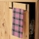 The original artwork by ZoeSPEAK on this Kitchen Towel is a basket weave pattern. The striped pink ribbons are woven over and under each other, creating shadows and curves over a very dark background.