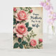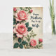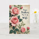 This greeting card features a lush cluster of pink flowers and leafy stems set against a softly aged, parchment-like beige background. Two fully open blossoms dominate the left side, their petals fading from a deeper pink center to pale, creamy edges, as if leaning close in a tender, affectionate moment ❤️. Smaller buds and half-open blooms trail around them, guiding your eye across the arrangement like a gentle conversation between close partners. Curving green stems and layered leaves weave through the design, with visible veins adding texture and a fresh contrast to the soft petals 🌼. On the right side, the message “Happy Mother’s Day to my Wife” sits in a flowing, calligraphic style, aligned slightly above center. The lettering is dark blue, standing out clearly while still feeling balanced with the floral artwork. The background stays warm and lightly mottled, with subtle shading around the petals and stems that gives the whole scene a softly lit, vintage look.