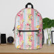 This allover print backpack features a vibrant striped pink and yellow floral pattern that is perfect for adults and school children, ensuring their essentials can be carried with style and comfort. Designed for practicality, this backpack features adjustable padded shoulder straps, a spacious interior, a mesh side pocket, and an internal identification label. It offers ample storage space for books, snacks, and other essentials without compromising on its lightweight structure.