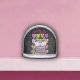 This snowglobe is black with a cute striped purple cat with green eyes with a wall of colourful Valentine candy hearts with sayings behind him. Customise your text with the template.