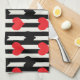 Striped Red Black Love Heart Pattern Design Kitchen Towel