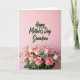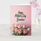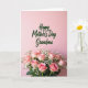 This card features a lush bouquet of roses arranged across the lower third, with petals in soft blush and coral pink that feel like a gentle hug ❤️. Tucked between the larger blooms are tiny white filler flowers, like little starbursts that add a light, friendly sparkle. Deep green stems and leafy sprigs weave through the arrangement, giving the florals a grounded, fresh contrast. The background is a smooth wash of warm, pale pink that keeps the scene calm and intimate, as if the flowers were just set down for someone special. Above the bouquet, the message sits centered in a flowing, calligraphy-style font, colored a rich forest green so it stands out without shouting. Soft, diffused lighting skims the petals and leaves, creating quiet shadows that make the bouquet look dimensional and tender 🌼. The green lettering floats over the pink backdrop while the roses and white blossoms fill the bottom portion in a balanced, garden-like cluster.