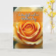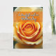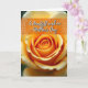 This card features a close-up view of a single rose filling the frame, with outer petals in soft buttery yellow that deepen toward a warm orange center, like a gentle embrace ❤️. The petals curl inward in tight spirals, and their fine textures and slight ripples add a tender, intimate feel. A wide horizontal orange band runs across the upper middle area, creating a strong contrast against the flower’s lighter edges. Small decorative flourishes sit near the ends of the band, subtly framing the message. Centered on the band, the text reads “A Heartfelt wish on Mother’s Day” in white lettering with a thin darker outline for clarity. The lighting is soft and airy, highlighting the rose’s curves and giving the colors a calm glow 🌼. The orange banner sits just above the rose’s brightest inner spiral, while the yellow petals fade outward toward the edges of the image.