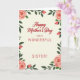 Designed with a creamy ivory background, this Mother’s Day card centers a two-part message that feels close and affectionate ❤️. The top line uses flowing crimson lettering to announce the occasion, drawing your eye first with a gentle curve. Just beneath it, a softer red line in uppercase letters names the dedication, set slightly wider so it reads steady and supportive. Around the edges, a border of blush-pink roses and small rosebuds leans inward, like a quiet embrace framing the words. Deep emerald leaves and thin, darker stems weave between the blooms, adding contrast and a sense of depth. The reds, pinks, and greens sit calmly against the pale backdrop, creating a tender, romantic mood without feeling overdone 🌼. The text stays centered while the botanical border runs along the perimeter, with clusters of roses most noticeable near the corners.