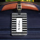 This patterned luggage tag is decorated with Mr. Williams written on the front, on a black and silver striped background, making it perfect for the new groom's honeymoon. This luggage tag is easy to personalize to a coordinating Mrs. tag.