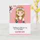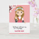 This design shows a stylized animated young woman centered on a blush-pink background, smiling with an open, welcoming expression that feels like a friendly hello. She lifts one hand in a gentle wave, and her direct gaze adds a hint of closeness, like she’s greeting someone special. A soft flower crown rests in her long brown hair, mixing small white, pale pink, and light blue blooms for a springtime look 🌷. She stands behind a wide white banner that stretches across the lower half, giving the layout a calm, balanced base. Her top is bright pink over a white layer, and her sleeves feature black-and-white stripes that add a modern touch without overpowering the scene. In the upper-left corner, a slender branch with tiny white blossoms leans inward, framing her face like a quiet bouquet 🐰. The message sits centered on the banner, with most words in a flowing cursive style and a few emphasized in matching pink lettering.