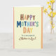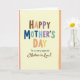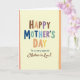 This card features the large text “HAPPY MOTHER’S DAY” centered on a creamy ivory background, with rounded letters in soft pastels that shift from earthy brown and peach through purples and blues to a warm golden tone. The slightly uneven letter shapes and softened edges make it feel like a caring note, as if someone took extra time to make each word look affectionate ❤️. Beneath the main line, a smaller phrase, “To a very special,” sits neatly in a simple, understated style and darker ink for contrast. Just below that, “Mother in Law!” appears in a flowing, cocoa-brown style, adding a gentle, tender touch that reads like a warm embrace 🌼. The layout keeps everything centered and easy to follow, with generous open space around the words so the message feels calm and welcoming. Along the left and right sides, pale coral and muted apricot vertical bands frame the design like soft brushstrokes that add warmth without crowding the text. The background remains a smooth, light cream tone, with those side borders fading subtly in and out like a light wash of color.