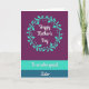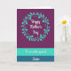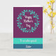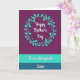This card features three horizontal color bands that guide your eye from top to bottom, creating a calm, affectionate look ❤️. The top section is a deep plum background with a circular wreath of aqua-teal leaves and tiny dot accents, like a gentle hug around the main message. Centered inside the wreath, the words “Happy Mother’s Day” appear in flowing white lettering with a faint shadow that makes the text stand out softly. Beneath that, a bright aqua-teal band holds the phrase “To an extra special” in smaller white lettering, neatly centered and easy to read. The design then settles into a darker ocean blue-teal base where “Sister” is written larger in matching white, giving it a tender emphasis, as if spoken with a warm smile 🌼. The cool tones and simple botanical details suggest closeness and appreciation without needing extra decoration. The wreath sits in the upper panel, while the middle and bottom lines of text are centered in their own bands against solid teal backgrounds.