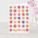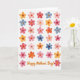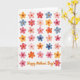 Designed with a neat grid of thirty-five stylized watercolor flowers, this card spreads a springlike warmth across a bright white background 🌼. Each bloom has five or six petals with softly blurred edges and gentle color fades that feel like a tender brushstroke shared between friends. The palette mixes soft blues, sunny yellows, warm oranges, and a range of pinks and reds, creating an affectionate, romantic glow without being overdone ❤️. Small, darker centers anchor each flower and add a quiet point of focus, like a close look held a moment longer. The layout stays orderly in rows, yet every blossom varies slightly in shape and pigment, keeping the scene lively and human. Along the bottom, the message “Happy Mother’s Day!” sits centered in orange, written in flowing, cursive-style lettering that echoes the curves of the petals. The white space around the grid gives the colors room to breathe while keeping attention on the repeating floral pattern. Each flower shows a deeper dot at its center with soft washes radiating outward into the petals.
