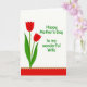 This greeting card features two stylized red flowers on the left, rising on slim green stems with sweeping leaves against a bright white background, like a pair leaning gently toward each other ❤️. To the right of the flowers, a short dedication appears in rounded green lettering, set mid-height so it feels like it’s speaking directly across the open space. The simple layout keeps the eye moving between the blossoms and the message, creating a quiet, friendly closeness in the scene. The red petals stand out strongly against the white field, while the green foliage and text add a fresh, garden-like touch 🌼. Along the bottom edge, a wide red band runs across the card, adding weight and balance to the airy top area. Within that band is a fine stitched-look pattern that suggests careful detail without looking fussy. The overall palette stays to red, green, and white, with the flowers on the left, the green text on the right, and the red band anchoring the lower edge.