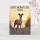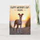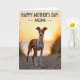 This greeting card shows a tall, slender dog standing on a sandy path that narrows toward a sunlit horizon, as if pausing for a quiet moment with you ❤️. Rust and white fur catches the low evening light, turning the scene into layers of amber, gold, and soft peach. The dog’s golden eyes meet the viewer with a gentle, steady look that feels like a loyal friend waiting close by. Soft, out-of-focus dune grass borders the path on both sides, adding texture and a cozy, tucked-away feel. Farther back, the calm ocean stretches to the horizon where the sun sits low, creating a glowing ring of light above the water 🌼. Near the top of the design, a short greeting appears in dark, clear lettering, centered against the bright sky for easy reading. Fine grains and faint footprints are visible in the sand beneath the dog, and the distant waterline is a thin, smooth band under the radiant sun.
