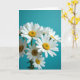 This design shows a close-up cluster of cheerful white-petaled flowers with sunny yellow centers set against a smooth teal background. The nearest blooms are sharply detailed, while the flowers farther back soften into a gentle blur, like friends leaning close while the rest of the room fades away ❤️. Soft, diffused light glides across the petals, bringing out fine textures and slight curves that feel tender and calm. The contrast between the bright yellow centers and the white petals adds a warm spark, as if the blossoms are sharing a quiet, affectionate glance. A short greeting appears near the top in small white lettering, and a second line sits near the bottom in a matching style for balance 🌼. The words stay subtle so the flowers remain the main focus, with plenty of open teal space around them. Several petals overlap in the foreground, and the teal background stretches evenly behind the blooms with no other objects in view.