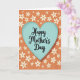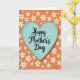 This card features a large, textured heart in soft muted teal at the center, setting a gentle, affectionate tone ❤️. Inside the heart, a flowing black inscription sits neatly in the middle, standing out against the calm teal. The background is a rich burnt orange field that feels cozy and inviting, like a warm glow behind a quiet love note. Scattered across it are stylized white five-petaled flowers with warm orange centers, arranged in a loose pattern that suggests an easy closeness and friendly warmth. Some blossoms appear to connect to thin white stems, giving the layout a light, garden-like feel 🌼. A subtle worn texture runs through the heart and background, adding a slightly aged print look without distracting from the design. The black lettering remains centered within the teal heart, while the white flowers repeat across the orange space in varied sizes with occasional stem lines threading between them.