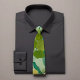 Introducing our latest fashion tie design - a striking leaf pattern in bold blues, yellows, and greens on a solid green base. Simple yet eye-catching, this tie adds a pop of color to any outfit. Versatile enough for dress shirts or button-downs, it's perfect for job interviews, nights out, or everyday wear. Treat yourself today and add some flair to your wardrobe with our newest fashion tie design!