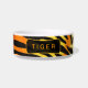 This trendy pet bowl features a striped tiger print pattern with black animal stripes on a very bright orange, yellow and cream fur background. Bring out the wild cat in your pet with this cool feline design. It's the perfect bold, original look for animal lovers. Personalize with your pet's name. Check our shop for matching items.
