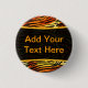 This trendy button / badge features a striped tiger print pattern with black animal stripes on a very bright orange, yellow and cream fur background. Bring out the wild cat in you with this cool feline design. It's the perfect bold, original look for animal lovers. Add your own text to personalize. Check our shop for matching items.