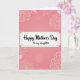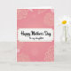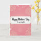 This card features a white, horizontal rectangle centered on a soft pink gradient background that shifts from deeper rose at the top to pale blush near the bottom. A dashed, scalloped border frames the rectangle like a vintage ticket, giving the layout a gentle, affectionate feel. Inside, the main line “Happy Mother’s Day” sits prominently in dark lettering, with “to my daughter” placed just below in smaller text, creating a tender, close-to-the-heart tone ❤️. The surrounding space is decorated with large floral outlines in a very light shade, tucked into the corners as if they’re leaning in like a warm hug. Faint, softly blurred circular light spots drift across the background, adding a dreamy glow without distracting from the words. The overall design suggests a caring bond through its calm colors and the way the message is held neatly in the center 🌼. Pale flower outlines bloom at the top-left and bottom-right corners, while the scalloped border dots trace evenly around the white panel.