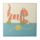 Striped Toy Cat with Ball of String Ceramic Tile