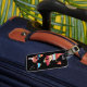 Cool worldmap image with color stripes inside its shape, to personalize with your name and phone-number... A clever way to make your luggage stand out in a crowd...'cause everyone seems to travel with a black suitcase