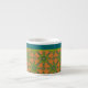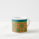 A chic little Espresso Coffee Mug to personalize, with a pattern of stylized Green Flowers, outlined in Navy Blue, on a Rusty Red Background, teamed with a matching striped pattern. Part of the Posh & Painterly "Jungle Drums" collection.