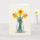 This design shows three trumpet-shaped blossoms in bright yellow with a ruffled orange-red center, arranged close together like friends leaning in ❤️. They sit in a clear glass vase, where dark green stems are visible beneath the waterline, adding a calm, steady contrast. The background is a creamy off-white, giving the flowers plenty of space and making their warm tones stand out. Gentle gradients and sharp edges shape the petals and vase, with light catching along the glass to create a tender, luminous look. Soft shading follows the petal curves, suggesting depth while keeping the illustration style smooth and tidy. A short Mother’s Day message appears near the top in a warm coral tone, with smaller words tucked underneath in a lighter gray, leaving the artwork to breathe 🌼. The vase rests on a pale gray shadow that stretches slightly to the right.