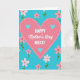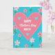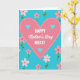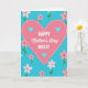 This card features a large pink heart centered on a saturated turquoise background, edged with a dashed white outline that adds a sweet, stitched-like touch ❤️. Across the blue field, small five-petal flowers in soft pink drift around the heart, each with a slim green stem and a tiny red center, like gentle little gestures being offered. The scattered blossoms form a loose frame that draws your eye inward and suggests a friendly, caring presence all around. Inside the big heart sit three smaller turquoise hearts, neatly arranged to echo the background and hint at closeness and connection. In the middle of the heart, the main message is placed prominently, mixing uppercase lettering with a flowing cursive-style line for contrast. The text appears in crisp white against the pink, making it easy to read while still feeling tender and affectionate 🌼. The overall layout keeps the focus on the central heart while the flowers soften the edges and add movement. The turquoise backdrop is dotted with pink flowers that have green stems and small red centers.