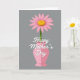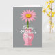 Designed with a single eye-catching flower at the center, this digital artwork focuses on a pink bloom with soft petals opening around a golden-yellow center ❤️. A thin green stem drops straight into a classic vase shape, keeping the layout calm and balanced. The vase is a rosy pink with gentle two-tone shading that gives it a slight sense of depth while staying flat and graphic. Across the front of the vase, a short love message appears in flowing white lettering, standing out clearly against the pink. The text sits centrally and overlaps the vase like a tender note placed right where hands might hold it close. Behind everything is a muted gray background that lets the pinks, yellow, and white feel quietly intimate, like a small gift left on a table 🌼. The flower is positioned above the vase with neat symmetry, and the white words sit right over the vase’s midsection. Share these Mother’s Day sentiments with someone special.