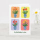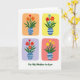 Designed with four separate floral panels, this card shows stylized bouquets arranged like little moments shared side by side, each inside a softly rounded rectangle. Every bouquet sits in a blue-and-white striped vase, with simple stems and leafy greens that feel steady and comforting beneath the blooms. The flowers open in a mix of reds, oranges, yellows, and blues, and the slight differences between each arrangement suggest a gentle give-and-take, like friends bringing each other small joys ❤️. Behind the bouquets, each panel has its own pastel backdrop—apricot, daffodil yellow, lavender, and salmon pink—so the set feels coordinated while still varied. A short line of dark green text is placed below the four panels, centered near the bottom, like a quiet note tucked under the pictures. The overall look stays flat and graphic, with even color and crisp shapes that keep the focus on the bouquets and their soft, affectionate energy 🌼. The four rounded frames are evenly spaced in a neat grid across the front, with the striped vases aligned along the same baseline.