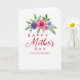 This card features a white background topped by a watercolor flower garland that curves gently like an embrace, setting a romantic, appreciative tone ❤️. The garland is filled with fuchsia, soft blue, deep purple, and blush-pink blooms tucked among leafy green sprigs, with translucent paint edges that look airy and tender. Centered beneath the flowers, the main message sits in rich red lettering, with “HAPPY” above and “DAY” below, keeping the layout balanced and easy to read. “Mother’s” appears larger in a flowing cursive style, adding a softer, more intimate touch, while the other words use a simpler printed style for contrast. The line “TO MY BEAUTIFUL WIFE” is smaller and placed under the main words, like a quiet note meant for one special person 🌼. The open white space around the text and flowers makes the colors feel gentle rather than heavy, like a calm pause before a hug. The garland arches across the top edge, leaving the lower half mostly clear except for the centered red message. The blossoms cluster most densely near the top center, with a few petals and leaves tapering outward toward both corners.