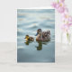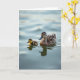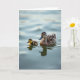 Designed with a serene water scene, this card shows an adult water bird gliding a little off-center with its tiny, fluffy chick close by, their closeness reading like a gentle, caring bond ❤️. The adult has layered feathers in warm browns with deep black markings, facing forward as if guiding the little one through the calm. Beside it, the chick is a small puff of yellow with soft brown touches, paddling to keep up and sending out small ripples that touch the adult’s wake. Soft daylight falls across their feathers, bringing out fine texture on the adult’s head and the downy look of the chick. Their reflections shimmer under the surface, slightly blurred by the water’s slow movement, like two companions staying in step. Near the top, a simple Mother’s Day message sits centered in a gentle, dark tone that’s easy to read, with a smaller line beneath it in a lighter shade 🌼. The background stays minimal, with smooth, silvery-blue water and faint shadowed ripples spreading outward around the pair.